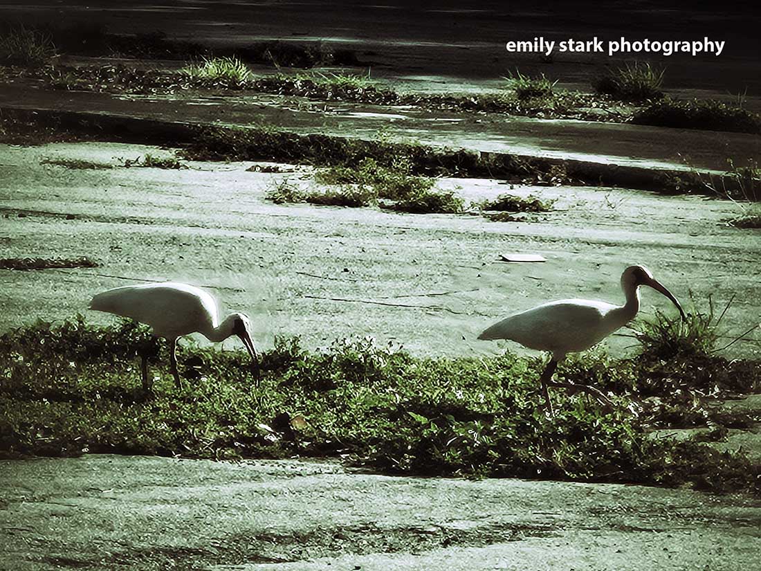 Birds June 13, 2025 by Emily Stark A couple white birds walking through a parking lot in Orlando, Florida.