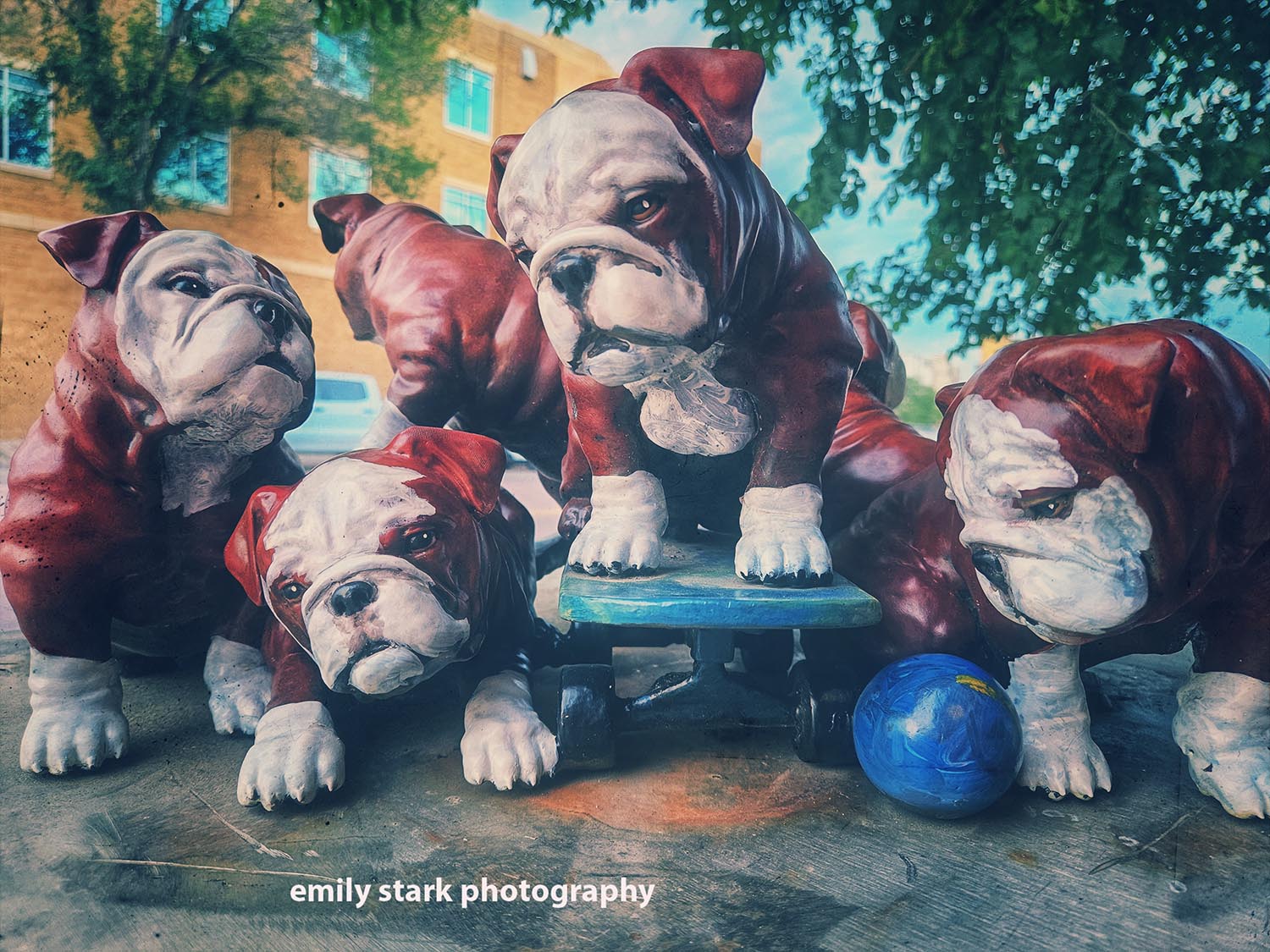 Doggos August 15, 2025 by Emily Stark A cute sculpture of dogs playing on a skateboard, part of the 2025 Mankato Art Walk downtown sculptures.