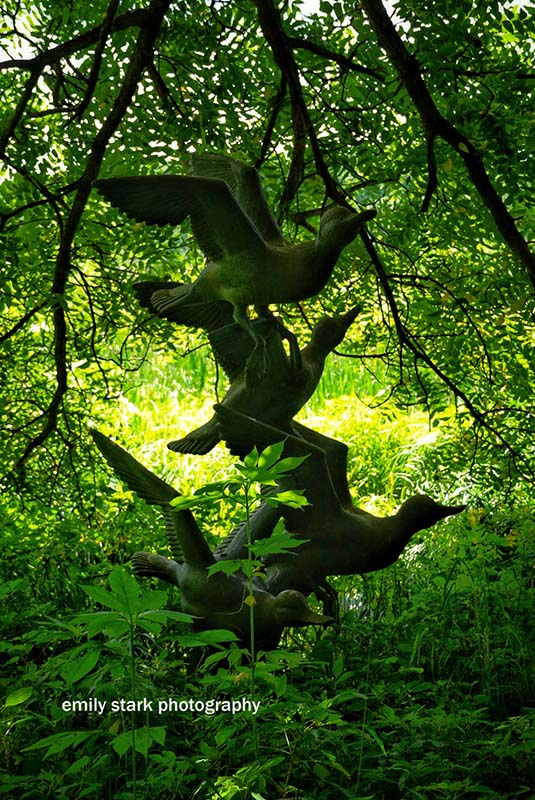 Flight Sculpture September 11, 2025 by Emily Stark A sculpture of birds taking flight, tucked in near the lake at the Minnesota Landscape Arboretum in Chaska, MN.