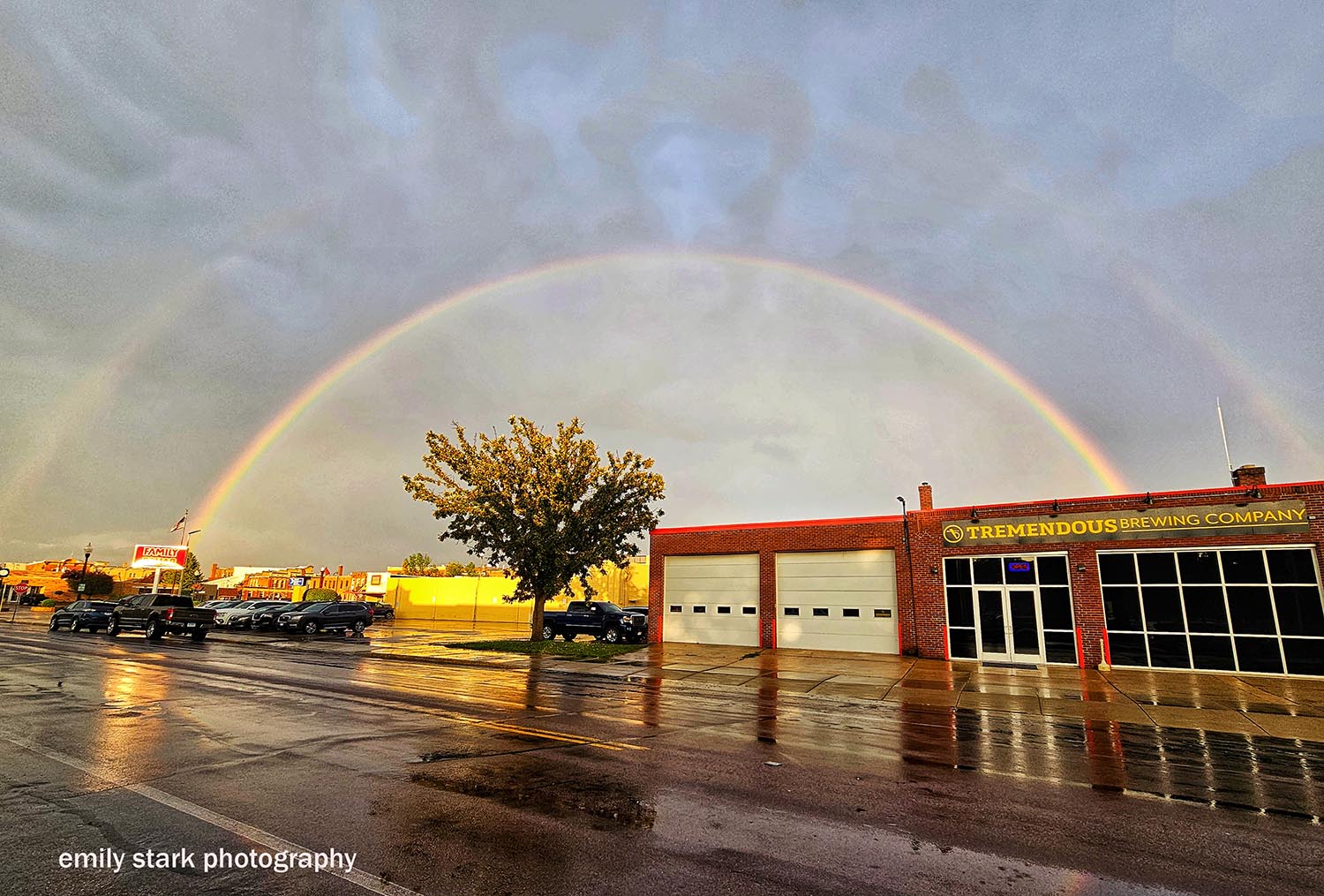 Double Rainbow October 20, 2025 by Emily Stark Leave a Comment A double rainbow after an evening storm over Tremendous Brewing in St. Peter, Minnesota.