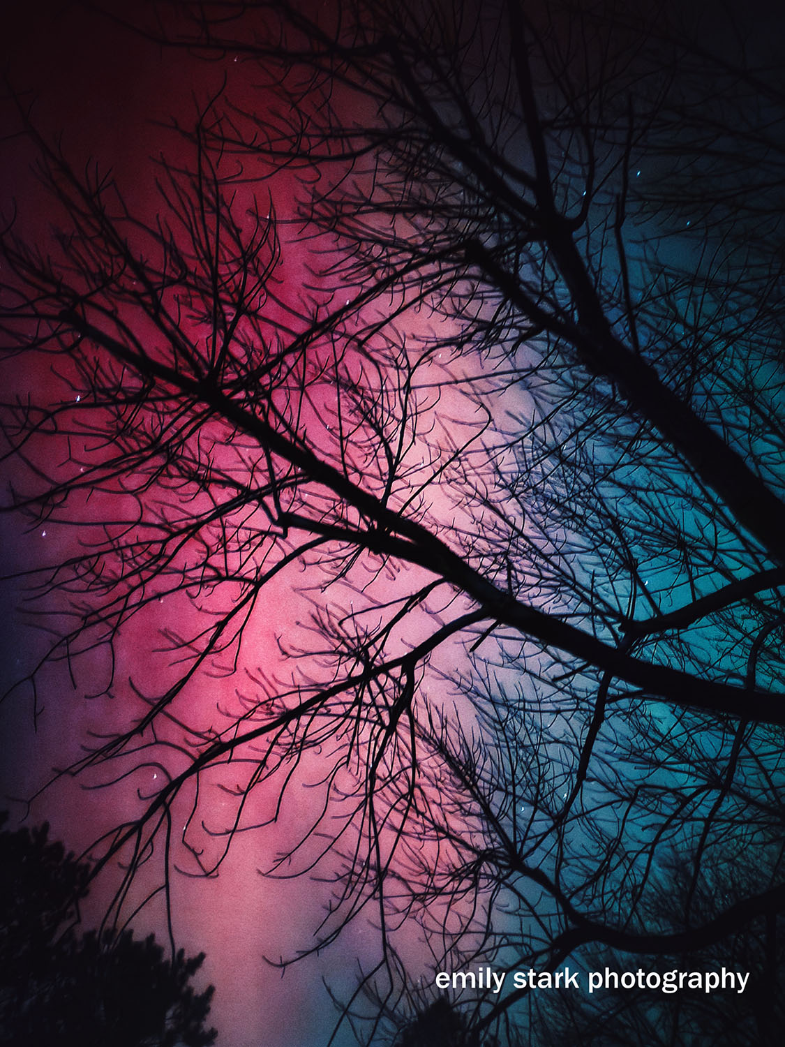 Northern Lights January 29, 2026 by Emily Stark Leave a Comment Fuchsia northern lights illuminate a backyard tree in St. Peter, Minnesota, in fall 2025.