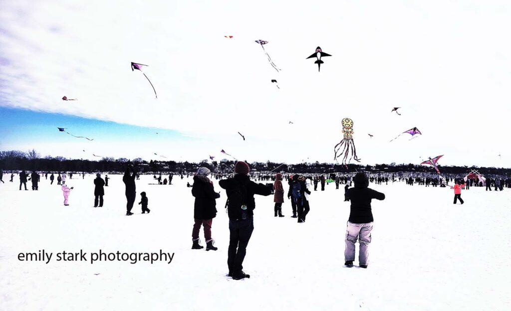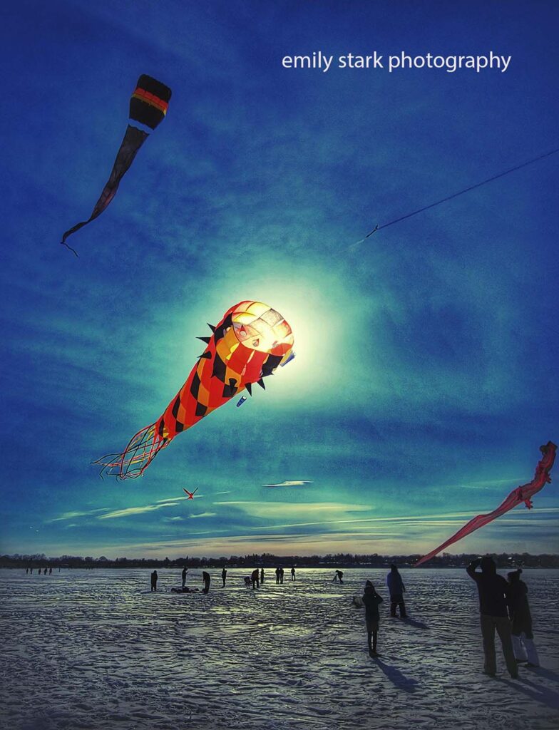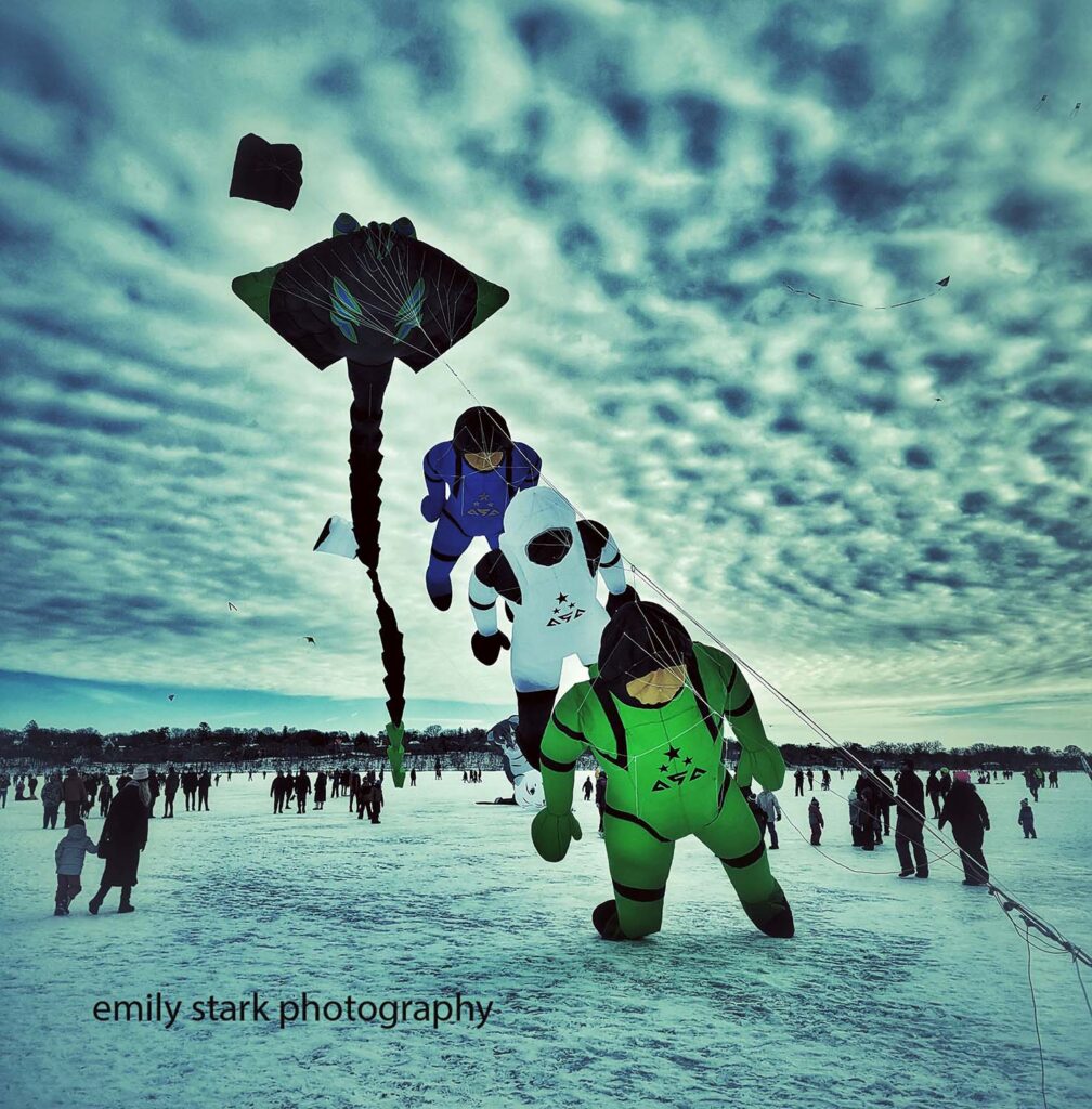 Images from the Minneapolis Kite Festival in January, 2022, on Lake Harriet [Bde Unma].