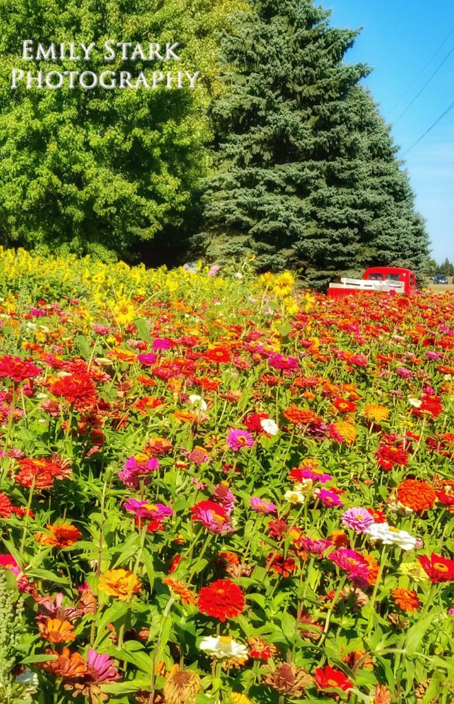 Red Truck and Flower Field