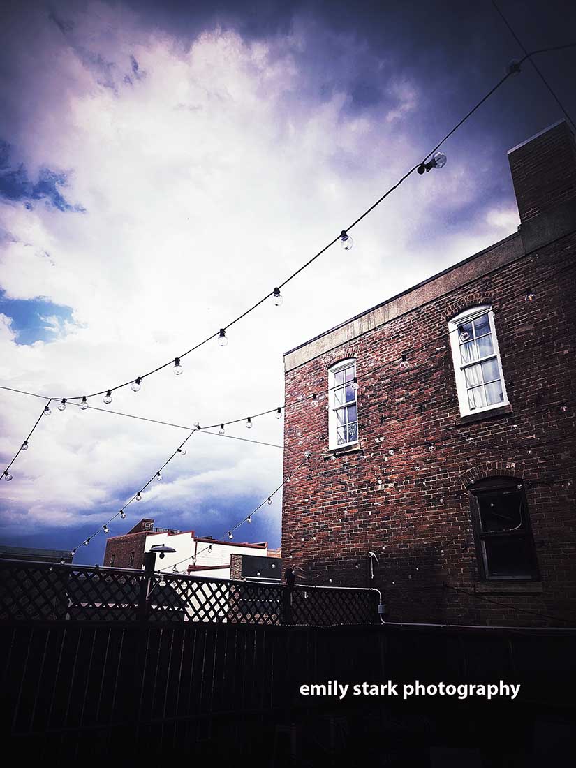Evening Patio September 24, 2025 by Emily Stark Lights on the patio at Patrick’s on Third in St. Peter, Minnesota.