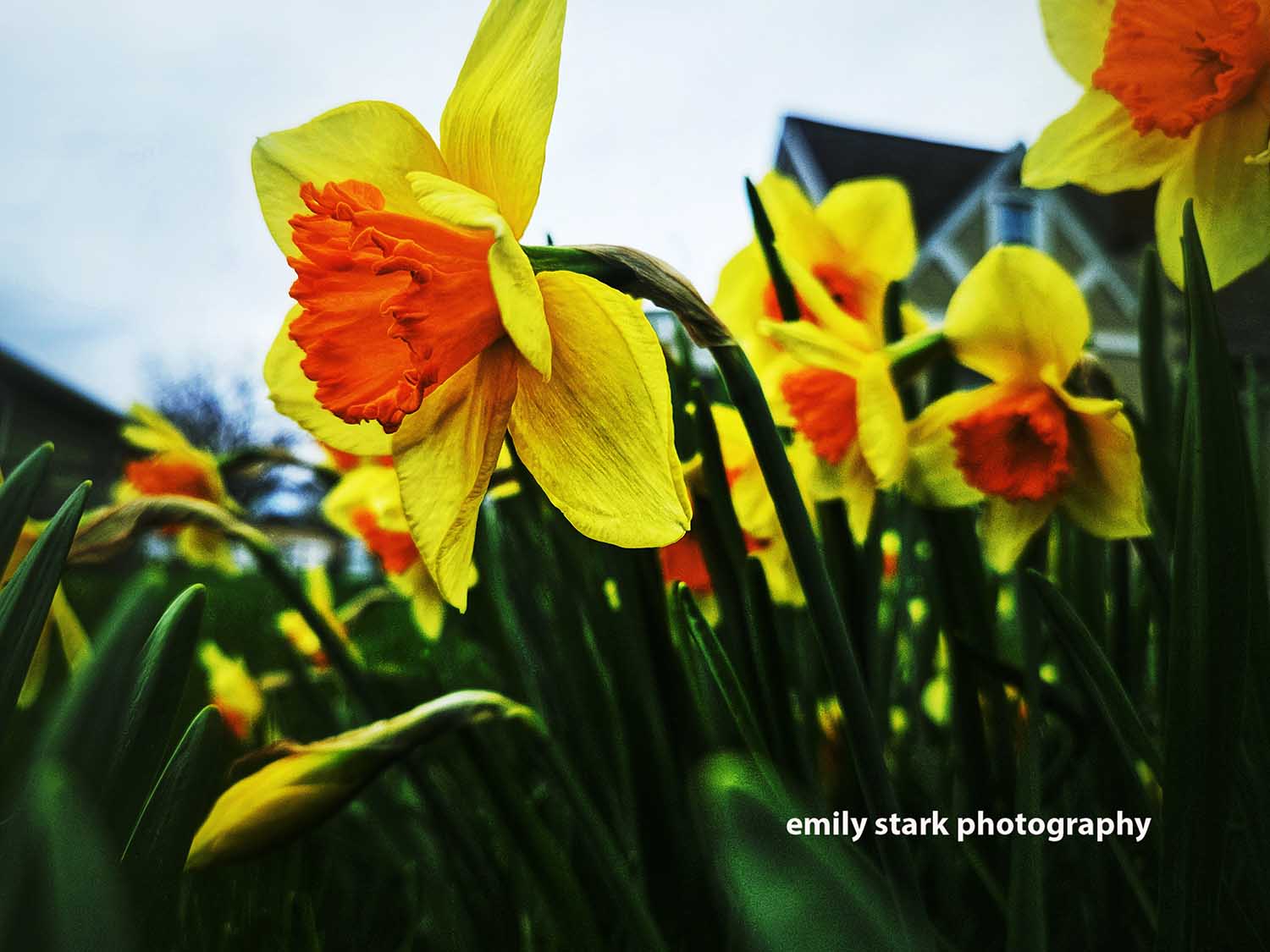 Daffodils June 4, 2025 by Emily Stark A blooming patch of daffodils on a gray, windy day in St. Peter, MN.